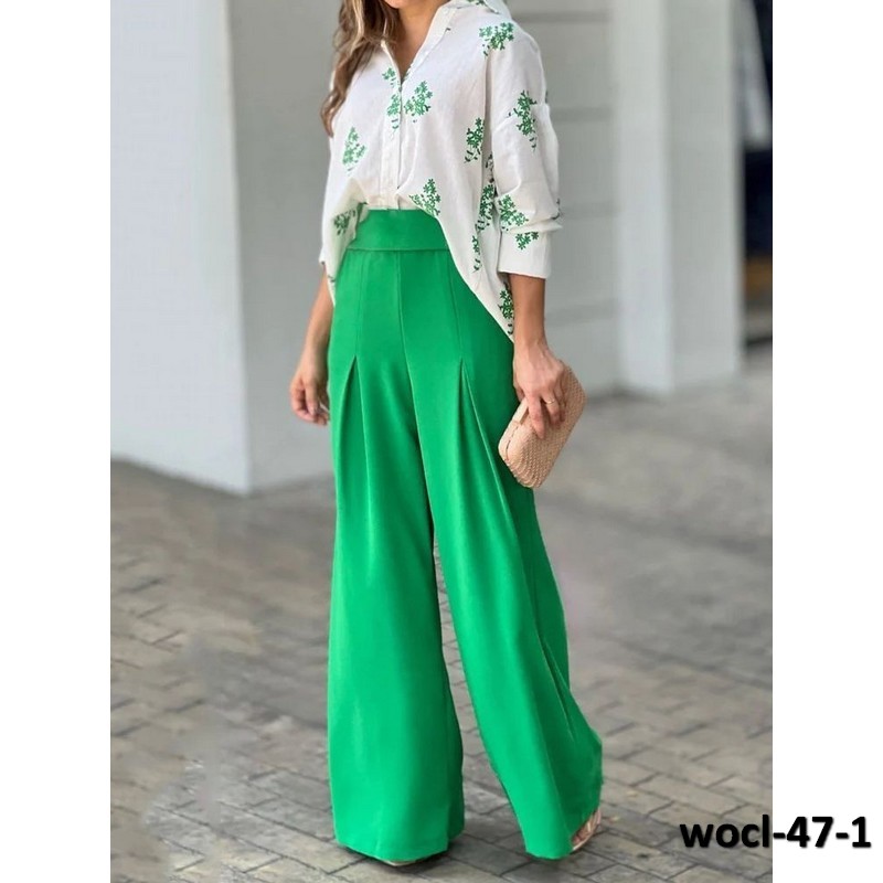 طقم نسائي (قطعتين) القياسات: S-XL المادة:بوليستر محيط الصدر: 118-102 سم طول القميص: 67-63 سم طول الأكمام: 60-56 سم محيط الخصر: 86-70 سم طول البنطال: 110-106 سم قياسات تقريبية